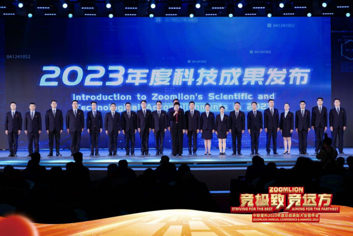 科技成果發布是此次年會現場最硬核的環節之一。“四大全球之最”“五大行業首創”“七款全新新能源產品”……中聯重科2023年度系列科技碩果重磅亮相,精彩目不暇接。獲得“國家卓越工程師團隊”榮譽稱號的中聯重科起重機械技術創新團隊在會上驚艷亮相,持續彰顯著中聯重科強大的科技人才力量和卓越的科技領軍實力。