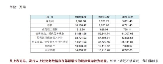 據相關媒體報道,森達電氣的多項財務數據幾乎是等差數列式規律性增加,如2020年到2022年,公司凈利潤分別約為5900萬元、6900萬元、7900萬元,彼此差額約為1000萬元;合同資產分別約為7000萬元、1億元、1.3億元,彼此差額約為3000萬元。