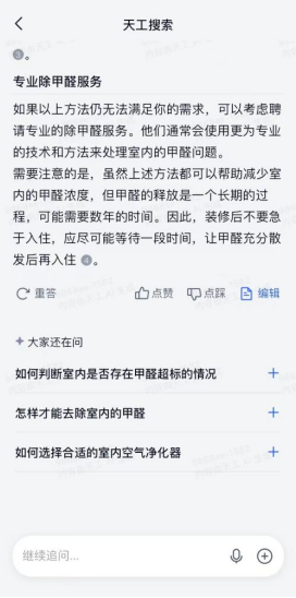 (天工AI搜索的答案集成、追問、溯源等功能)