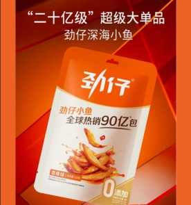 “大單品勁仔深海小魚是‘二十億級’,鵪鶉蛋是‘十億級’,算潛力大單品?!痹趧抛惺称范刎S文姬看來,勁仔食品目前的大單品名單里,有兩員“得力干將”:一個是看家產品深海小魚,另一個則是上升勢頭強勁的鵪鶉蛋產品。