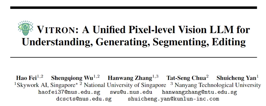 近日,由顏水成教授帶隊,昆侖萬維2050全球研究院、新加坡國立大學(xué)、新加坡南洋理工大學(xué)團隊聯(lián)合發(fā)布并開源了Vitron通用像素級視覺多模態(tài)大語言模型。