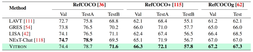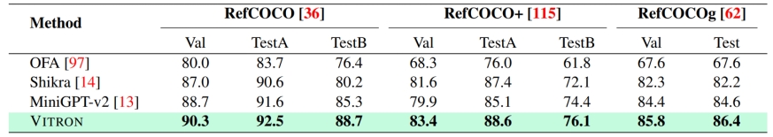 上表簡單地歸納了現(xiàn)有的視覺MLLM的能力(只代表性地囊括了部分模型,覆蓋不完整)。為了彌補這些差距,該團隊提出一種通用的像素級視覺MLLM——Vitron。