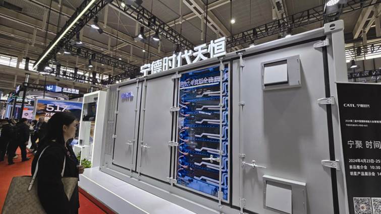 寧德時代展出的天恒儲能系統。 本報記者攝