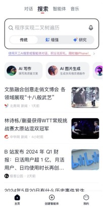 (天工AI搜索、AI對話、AI音樂用戶界面)