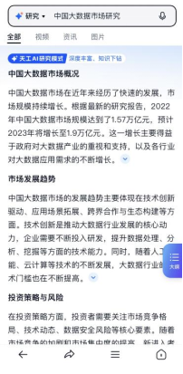 在新增的AI搜索研究模式中,天工AI能夠圍繞用戶的某個簡單指令進行相關問題的延伸,自動生成研究大綱、實踐總結、思維導圖,幫助用戶快速清晰地把握核心內容,完成用戶復雜的研究需求。