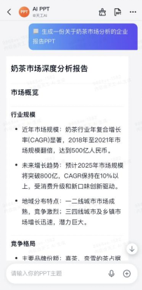 天工AI最新上線的AI PPT則是近期最受用戶歡迎的AI智能體之一。用戶只需要輸入PPT內容需求,天工AI即可立即在線生成一份完整、可編輯的PPT大綱及各頁內容文本,并實現智能檢索圖片、智能匹配模板,一鍵生成內容完整、邏輯清晰、布局優美的PPT文檔,用戶可在線或下載到本地進行編輯與分享。