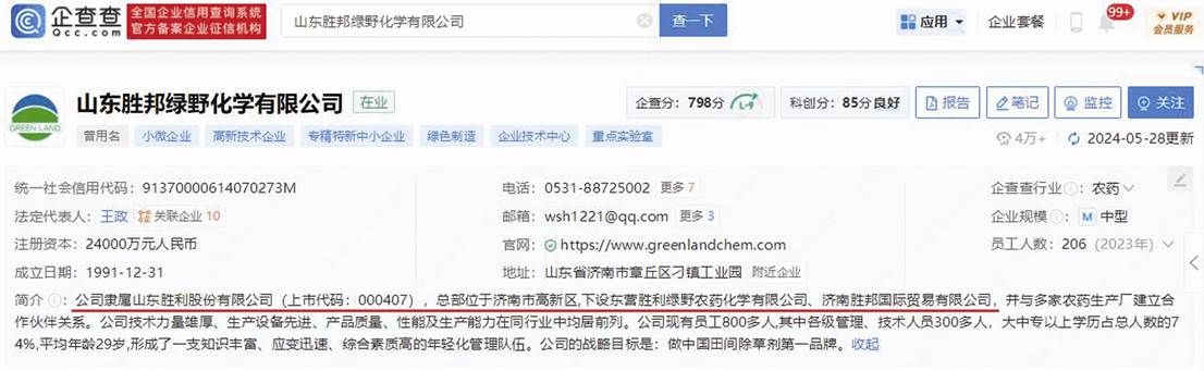 企查查關(guān)于山東綠野的簡介