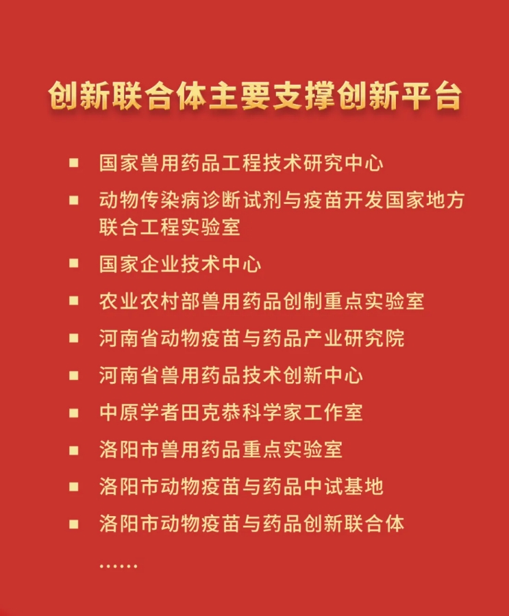 創(chuàng)新聯(lián)合體牽頭單位普萊柯公司將充分發(fā)揮所組建并高水平運(yùn)行的國家級(jí)創(chuàng)新平臺(tái)與孵化基地的突出優(yōu)勢(shì),引領(lǐng)協(xié)同創(chuàng)新聯(lián)合體相關(guān)成員單位,致力于破解獸藥行業(yè)發(fā)展關(guān)鍵技術(shù)瓶頸,切實(shí)鞏固提升洛陽市生物科技與獸藥產(chǎn)業(yè)在全國的領(lǐng)先優(yōu)勢(shì)!