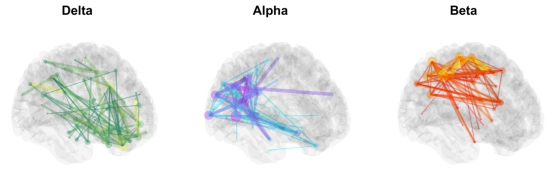 圖:Marvel MEG?腦磁圖儀健康人靜息態delta,alpha,beta頻段腦網絡連接圖