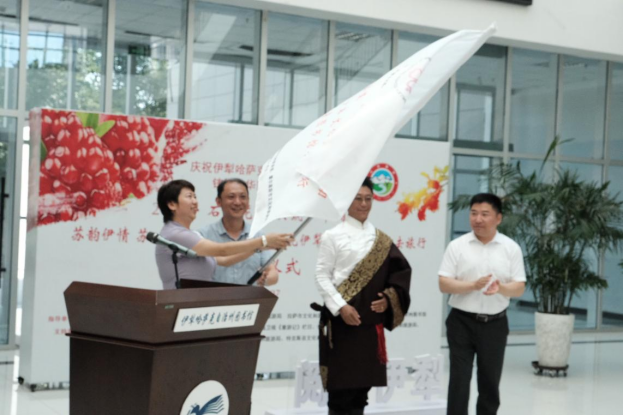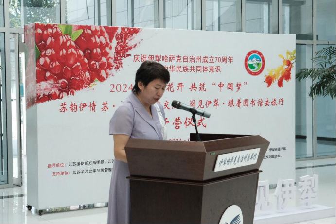 7月29日上午,由江蘇省對口支援西藏拉薩市前方指揮部、江蘇省對口支援新疆伊犁州前方指揮部指導,伊犁州文化和旅游局、拉薩市文化和旅游局主辦,拉薩市圖書館、伊犁州圖書館承辦,江蘇廣電總臺優(yōu)漫卡通衛(wèi)視《童游記》欄目全程拍攝,江蘇羊乃世家品牌管理有限公司公益支持,伊寧市文旅局、察布查爾縣文旅局、霍爾果斯市文旅局、霍城縣文旅局、特克斯縣文旅局協(xié)辦的石榴花開共筑“中國夢”—《童游記》蘇拉伊青少年文化交流之閱見伊犁·跟著圖書館去旅行在伊犁州圖書館開營。