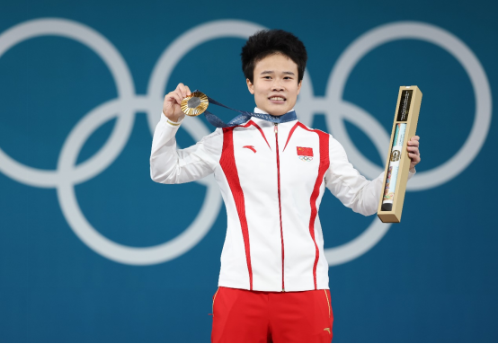 △在巴黎奧運會舉重項目女子49公斤級比賽中,中國選手侯志慧奪得冠軍。
