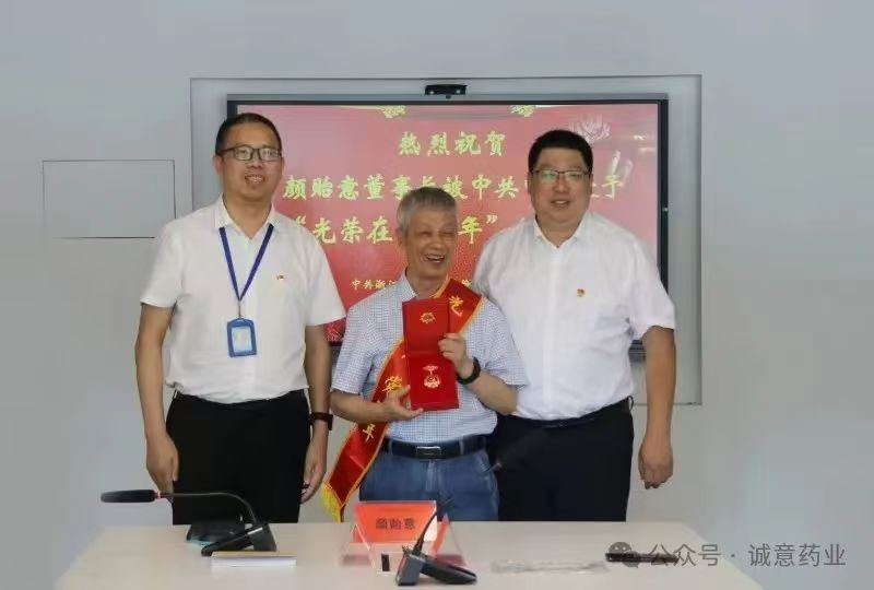 回想2021年6月20日,誠意藥業(yè)召開“中國共產(chǎn)黨建黨100周年慶祝大會”,時任黨委書記的顏貽意董事長在講話中動情地說:“誠意藥業(yè)全體黨員、全體員工將堅決跟黨走、永遠不回頭”,表明心志、堅定信仰。近日,顏貽意同志榮獲中共中央頒發(fā)的“光榮在黨50年”紀念章——從1974年7月加入黨組織至今半個世紀的光榮歷程,既是顏貽意本人的創(chuàng)業(yè)歷程,也是他率領的“浙江省第一家海洋生物醫(yī)藥上市公司”“溫州市生命健康產(chǎn)業(yè)鏈主企業(yè)”從無到有、從小到大的奮斗歷程。