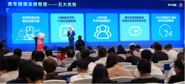 (美年健康集團副總裁郭璋介紹AI智能“血糖管理創新產品”)