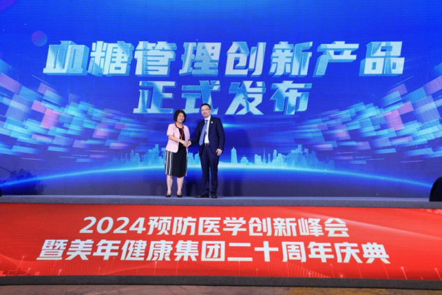 隨后,賈偉平院士與美年健康集團董事長俞熔共同上臺,宣布美年健康最新AI智能 “血糖管理創新產品”正式發布。這款產品的問世,標志著美年健康集團全面響應客戶對于高效、精準健康管理的需求,引領血糖管理邁入更科學、更高效、更富人性化的新階段。