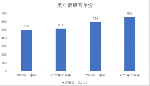 (圖:美年健康2021上半年至2024年上半年客單價(jià))