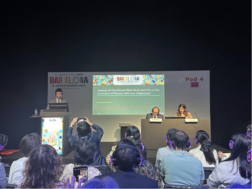 貴陽愛爾眼科醫院的許波醫生在會上分享了《ICL與TICL在低散光近視矯正中的臨床效果分析》的研究。通過對大量患者數據的深入分析,系統評估了這兩種技術的矯正效果、術后視力恢復及患者滿意度,為低散光近視的個性化治療提供了科學依據。