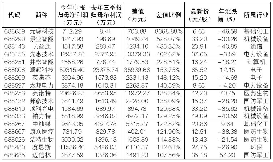 17只三季報潛在預增科創板股