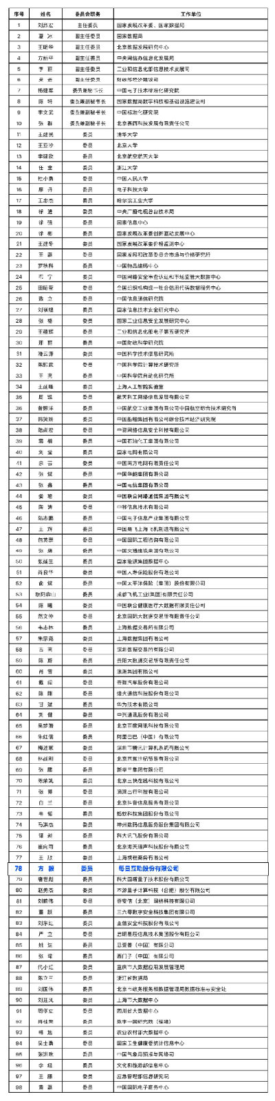 第一屆全國數據標準化技術委員會由98名委員組成。作為第一屆全國數標委委員,每日互動董事長方毅表示深感“使命光榮,責任重大”。未來會更加深度地參與行業相關標準的制定、推廣及應用,發揮出深耕在數據智能、數據要素行業多年的技術和經驗優勢,為國家數據要素領域的標準制修訂工作貢獻更多力量。一鳴
