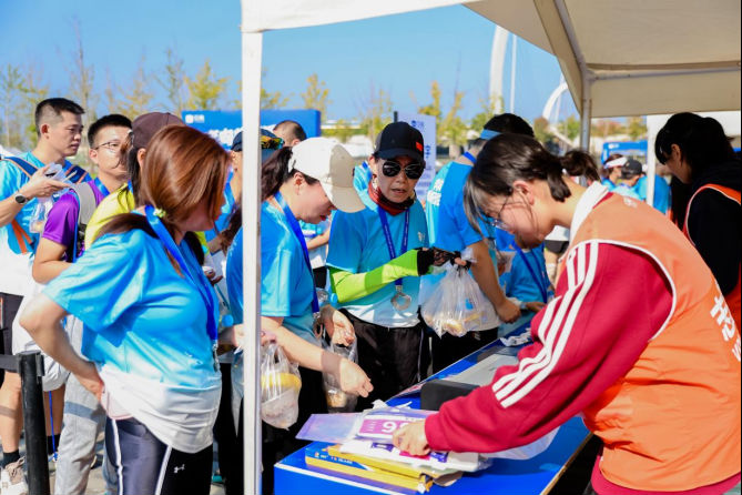活動(dòng)現(xiàn)場(chǎng)設(shè)置了多個(gè)互動(dòng)區(qū)域,完賽后跑友們可以在拍照區(qū)和自己的比賽成績(jī)一起打卡“南京眼”,還可以通過(guò)獎(jiǎng)牌上光刻姓名、塑封參賽號(hào)碼牌等形式進(jìn)行紀(jì)念保存?,F(xiàn)場(chǎng)人氣最高的要屬AI互動(dòng)拍照區(qū),攝影師用AI全息拍照設(shè)備給跑友們照相,隨后在旁邊的屏幕上即時(shí)生成專屬卡通形象。跑友們既可以通過(guò)現(xiàn)場(chǎng)的設(shè)備打印自己的卡通形象照片,還可以掃碼將照片保存至手機(jī)作為自己的專屬卡通名片。除了互動(dòng)區(qū)域,本次活動(dòng)還設(shè)有特色餐飲補(bǔ)給區(qū),貝殼為參賽者們準(zhǔn)備了充滿金陵風(fēng)味的南京烤鴨和鴨油燒餅。值得一提的是,活動(dòng)全程開(kāi)啟線上公益捐步,跑友可通過(guò)“善貝GO”小程序進(jìn)行捐步,貝殼將按步數(shù)比例進(jìn)行善款配捐,助力公益項(xiàng)目。