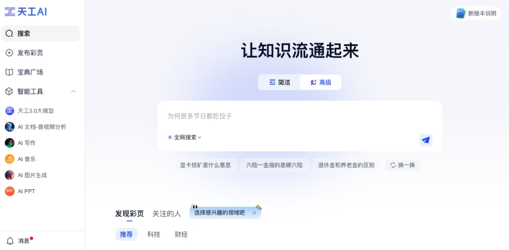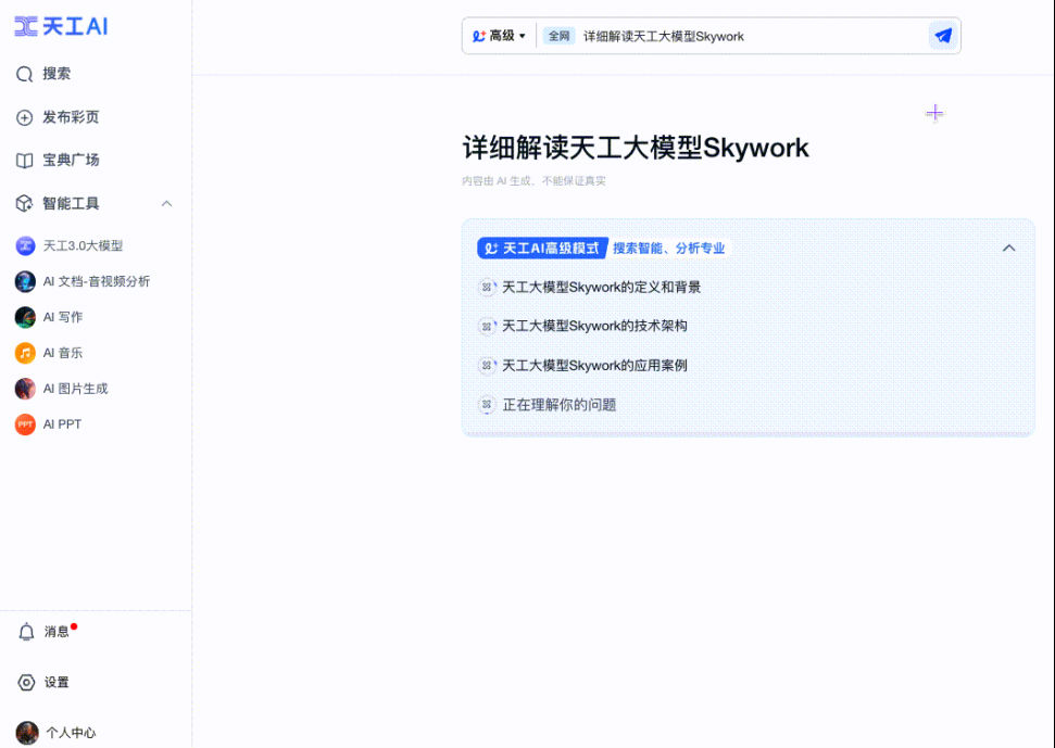 今天,昆侖萬維天工AI正式發布最新版本的AI高級搜索功能。