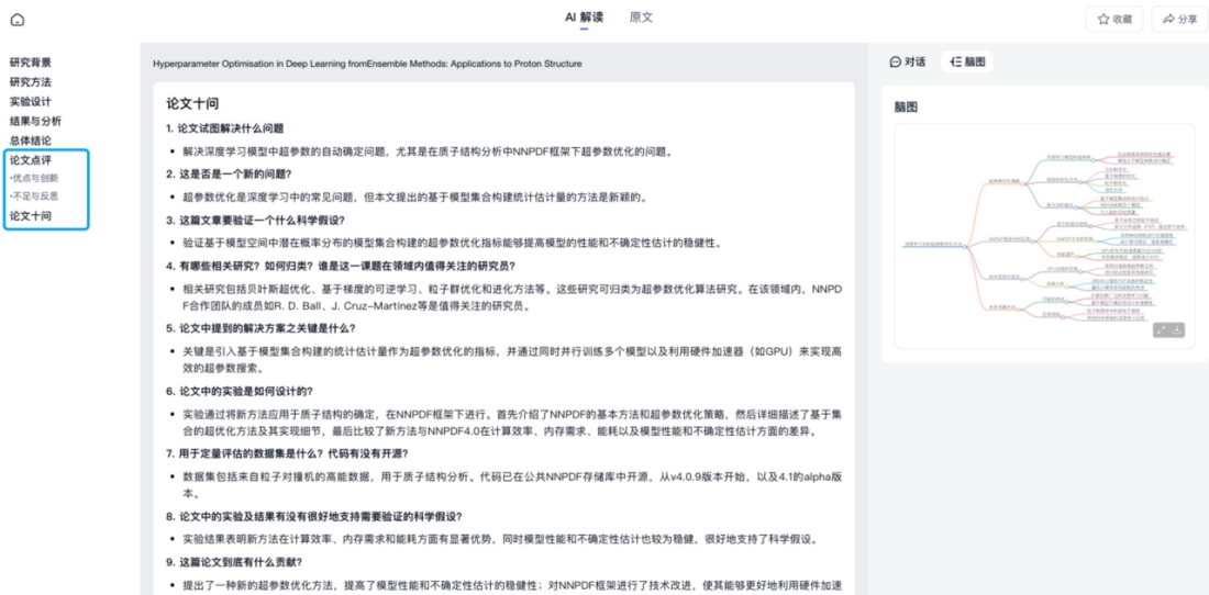 同時,還可以提供論文點評、論文十問、腦圖功能(如下圖所示),來幫助閱讀者更好的解析論文。