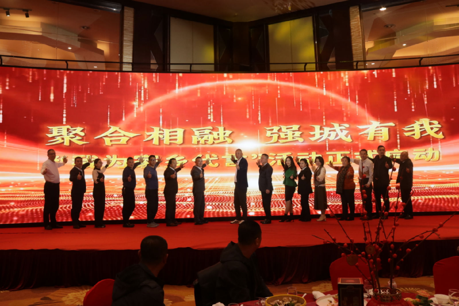 趙春建總經理(左一)與各位會長啟動“我為家鄉代言”儀式