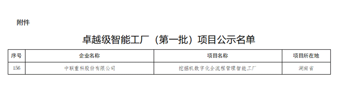 近日,工業和信息化部公示了首批卓越級智能工廠項目名單,中聯重科“挖掘機數字化全流程管理智能工廠”憑借卓越表現成功入選,充分彰顯出公司在智能制造領域的創新引領能力。