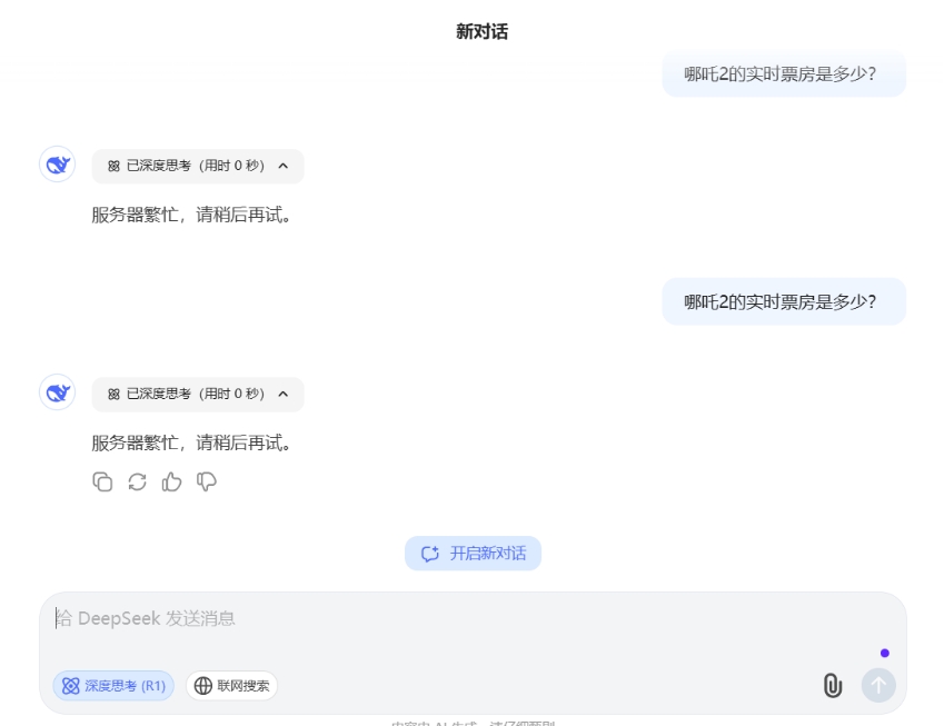自2025年1月下旬發布以來,DeepSeek R1模型迅速席卷全球AI領域。然而它的“聯網搜索”功能卻經常無法使用,只能根據2024年10月前的信息來思考;“深度思考(R1)”模型也時不時地來個“服務器繁忙,請稍后再試”。