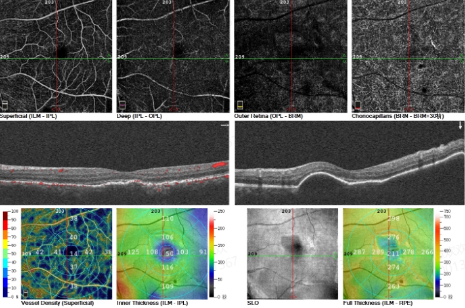 ▲左眼手術后七天復診眼底彩色照像及OCTA