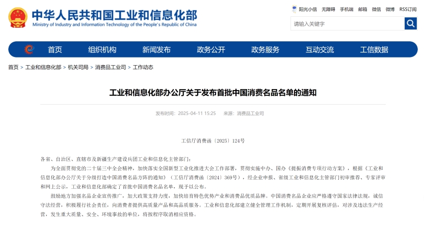 對于此次上榜的消費名品,工業和信息化部明確強調,鼓勵地方加強名品企業宣傳推廣,加大政策支持力度,中國消費名品企業應積極履行社會責任,向消費者提供高質量產品和高品質服務。