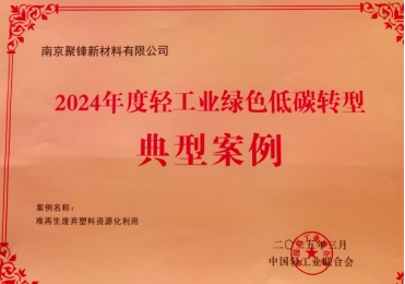 南京聚鋒新材“難再生廢棄塑料資源化利用”項目入選中國輕工業聯合會典型案例