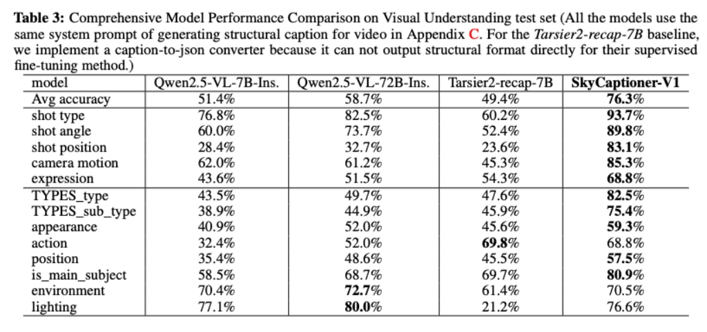 1. 全面的影視級視頻理解模型:SkyCaptioner-V1