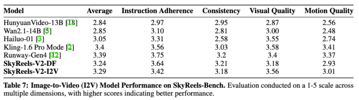 在SkyReels-Bench的I2V多維度人工評測集下,SkyReels-V2在所有質量維度上均優于其他開源模型,并與閉源模型表現相當。