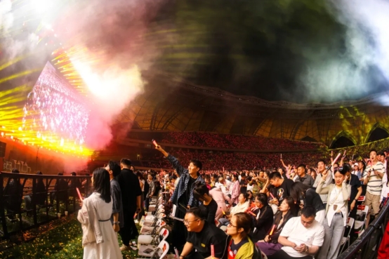 當黃綺珊唱起那首大熱金曲《向云端》;當《海芋戀》的輕快節奏響起;當《快樂崇拜》開啟萬人合唱……現場3萬名觀眾手中的紅色熒光棒匯成一片躍動的海洋。