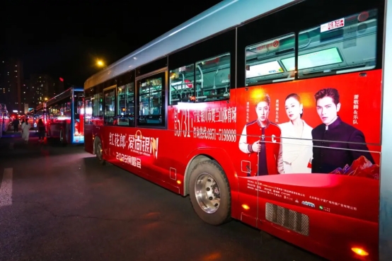 線下,郎酒早從2月便開始啟動的“寧夏萬桌宴席”,直接覆蓋寧夏1/30適酒人群(約30萬人),以“飽和式觸達”搶占消費者心智;緊接著百輛主題巴士、地標直接覆蓋核心商圈、交通干道,一時之間整個銀川城都在為這場紅花郎所帶來的“紅火盛宴”預熱,整座城被紅花郎的“郎味”席卷。