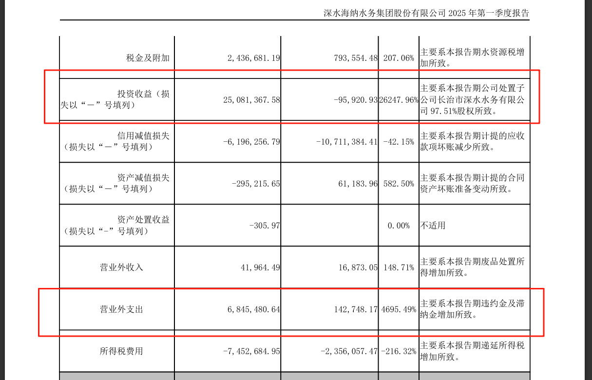 2025年一季度,深水海納依靠處置子公司長治市深水水務(wù)有限公司完成扭虧,當(dāng)期投資收益達(dá)2508.14萬元。對于該交易的目的,公司在相關(guān)公告中表示:“旨在整合資源、優(yōu)化資產(chǎn)結(jié)構(gòu)、推動輕資產(chǎn)經(jīng)營戰(zhàn)略,同時提高資產(chǎn)流動性。”