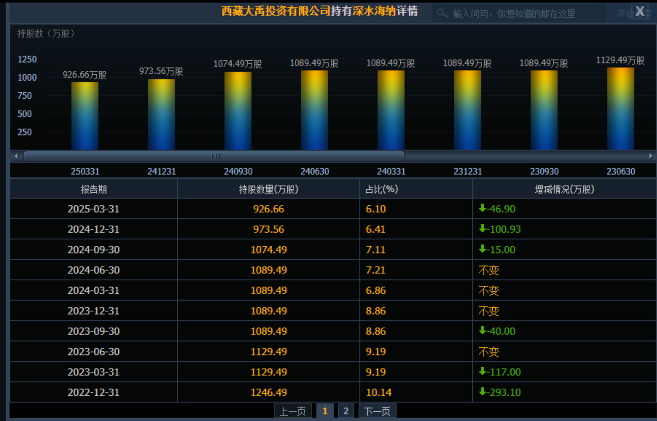(深水海納2025年一季報(bào)截圖)