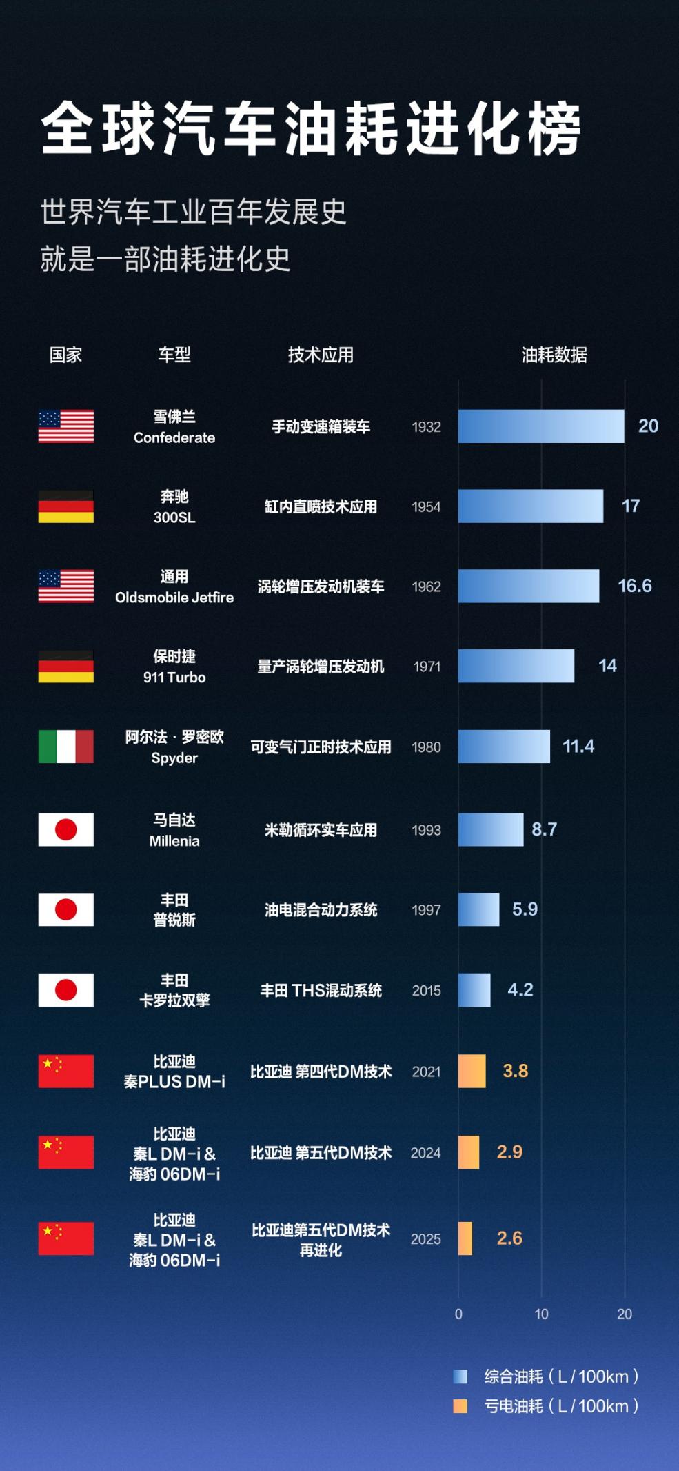 翻看全球汽車油耗進化史,早期話語權(quán)長期掌握在歐美日韓企業(yè)手中。而比亞迪的突圍,不僅實現(xiàn)了技術(shù)上的“從跟跑到領(lǐng)跑”,更在油耗、續(xù)航等核心指標(biāo)上建立了新的行業(yè)標(biāo)準(zhǔn)。