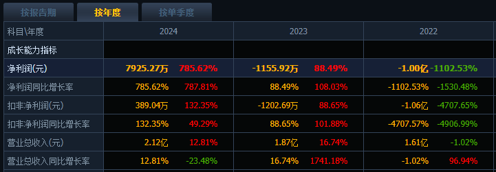 2024年,公司完成扭虧,凈利潤達7925.27萬元,同比大漲785.62%;營業收入達2.12億元,同比增長12.81%;扣非凈利潤為389.04萬元,同比增長49.29%。年報顯示,扭虧原因主要系兩個方面:一是得益于年度內公司進一步優化管理,在主營業務方面加強市場開拓及降本增效;二是完成了35萬噸/年尿素產能置換指標(含中間產品“合成氨”21萬噸/年)的轉讓,實現9,410萬元的含稅收入。