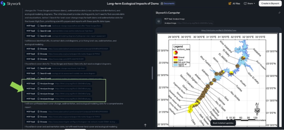 例如下圖(綠色箭頭處)所示,天工超級智能體(Skywork Super Agents)在檢索信息的過程中,會自動瀏覽并分析理解重要的圖片。