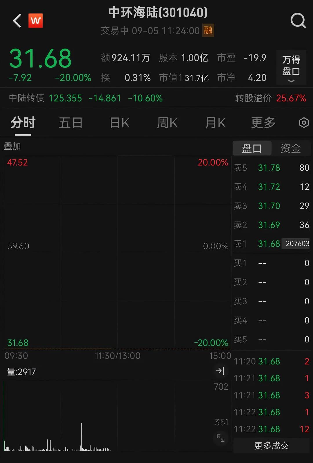 今日復牌的中環海陸(301040)開盤即“20CM”跌停,截至發稿時,該股股價暫報31.68元/股。今年以來,中環海陸的股價一路“飆升”,從探底的10元左右漲至30多元,年內區間漲幅超過150%。