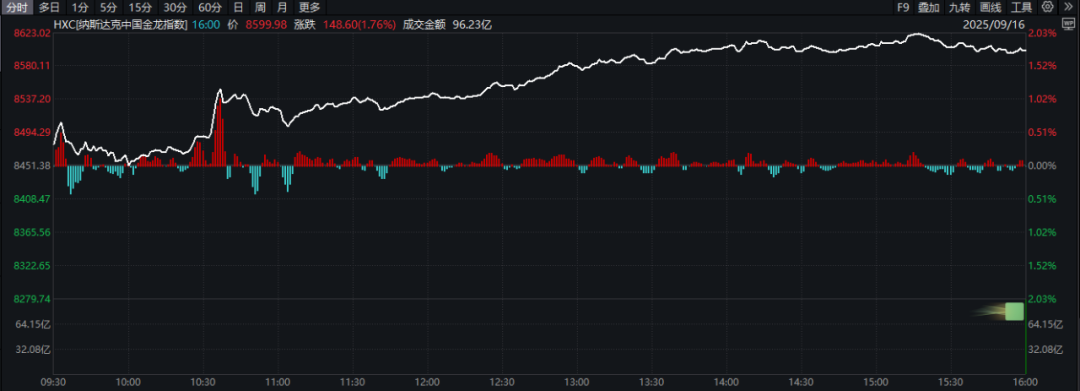 外資也看好中國市場。當地時間9月16日,納斯達克中國金龍指數收漲1.76%,創下自2022年2月以來新高。