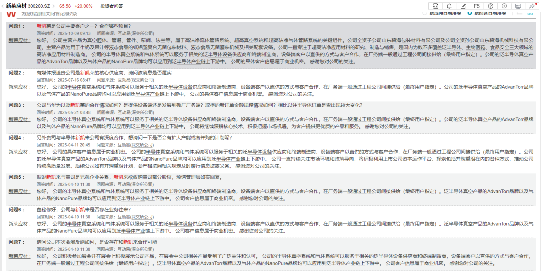 對于市場傳言,新萊應(yīng)材多次予以回應(yīng)。梳理公司在投資者互動平臺上的回應(yīng)可見,新萊應(yīng)材多次強(qiáng)調(diào)“公司客戶信息屬于商業(yè)機(jī)密”。