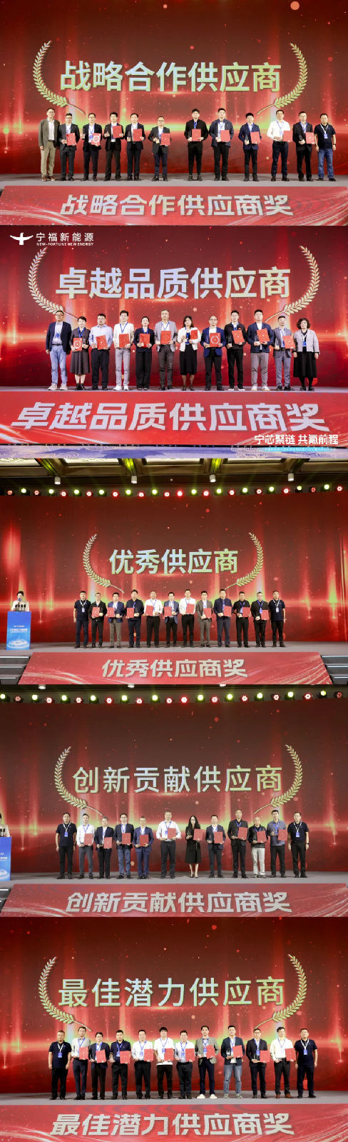 大會(huì)的核心環(huán)節(jié),將“協(xié)同共生”的理念落到實(shí)處。在供應(yīng)商頒獎(jiǎng)儀式上,多氟多對(duì)在技術(shù)創(chuàng)新、交付效率、質(zhì)量管控等方面表現(xiàn)突出的優(yōu)秀供應(yīng)商進(jìn)行表彰,從“戰(zhàn)略同盟”到“品質(zhì)典范”,從“優(yōu)秀中堅(jiān)”到“創(chuàng)新先鋒”,再到“潛力新星”,這五個(gè)維度,全面勾勒出多氟多與產(chǎn)業(yè)鏈伙伴“價(jià)值共創(chuàng)、責(zé)任共擔(dān)、成果共享”的宏偉畫卷。優(yōu)秀供應(yīng)商是產(chǎn)業(yè)鏈穩(wěn)定運(yùn)行的“基石”,也是生態(tài)協(xié)同發(fā)展的 “關(guān)鍵力量”,此次表彰不僅是對(duì)伙伴們過(guò)去一年努力的認(rèn)可,更是對(duì)未來(lái)深化合作的期許,希望以獎(jiǎng)項(xiàng)為紐帶,進(jìn)一步激發(fā)產(chǎn)業(yè)鏈上下游的協(xié)作活力,共同打造更具韌性的產(chǎn)業(yè)生態(tài)。
