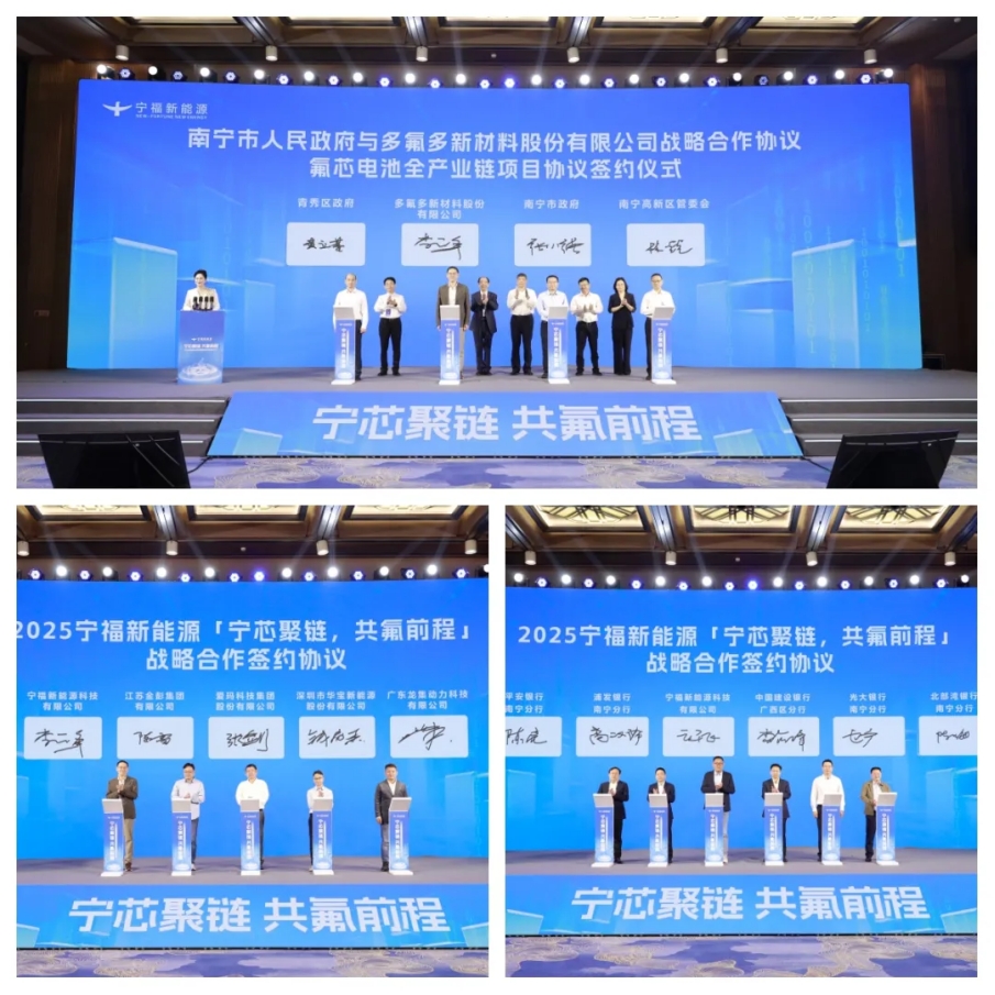 簽約儀式上,多氟多與南寧市政府和青秀區(qū)管委會(huì)簽署戰(zhàn)略合作,寧氟新能源與多家核心供應(yīng)商、下游應(yīng)用企業(yè)簽署合作協(xié)議,內(nèi)容涵蓋原材料長(zhǎng)期供應(yīng)、技術(shù)聯(lián)合研發(fā)、市場(chǎng)渠道共享等多個(gè)領(lǐng)域。一份份合作協(xié)議的簽署,標(biāo)志著多氟多與南寧的戰(zhàn)略合作進(jìn)一步加深,與產(chǎn)業(yè)鏈伙伴的融合進(jìn)入新階段,也讓“寧芯聚鏈”的愿景邁出實(shí)質(zhì)性步伐。