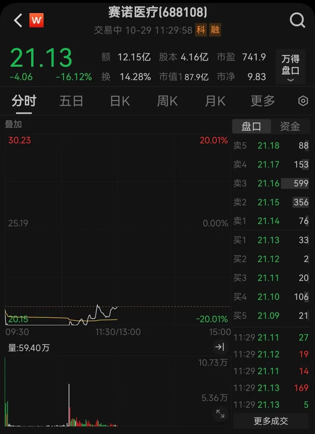 不予注冊!賽諾醫(yī)療,盤中“20CM”跌停