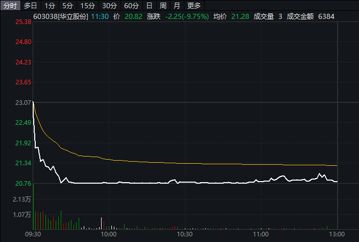 在拋出擬“跨界”收購的意向性協議后,主營裝飾復合材料的華立股份(603038)卻未能延續前一日股價漲停的強勢走勢,其今日低開后快速下挫,在跌停價反復“掙扎”。截至午間收盤該股股價報20.82元,下跌9.75%。