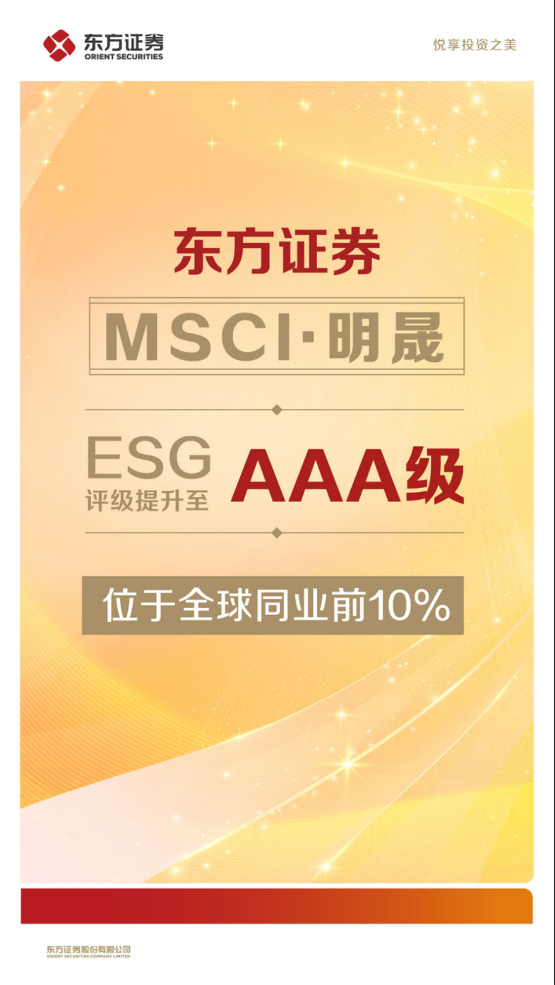 近日,國際權威指數機構摩根士丹利資本國際公司(中文簡稱“明晟”,英文簡稱“MSCI”)發布了東方證券股份有限公司(簡稱“東方證券”)2025年度最新ESG評級結果。東方證券2025年MSCI ESG評級已從AA級提升至全球同業最高AAA級,排名位于全球同業前10%。
