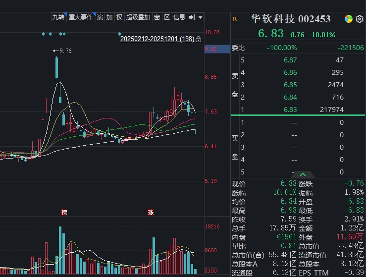 12月首個交易日,華軟科技(002453)股價開盤即跌停,賣一位置超1億元資金排隊“出逃”。