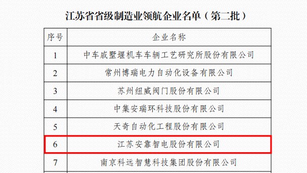 近日,江蘇省工業(yè)和信息化廳公布省級制造業(yè)領(lǐng)航企業(yè)名單,安靠智電憑借智能輸電領(lǐng)域的技術(shù)創(chuàng)新實(shí)力、行業(yè)帶動效應(yīng)及發(fā)展質(zhì)量成功入選。